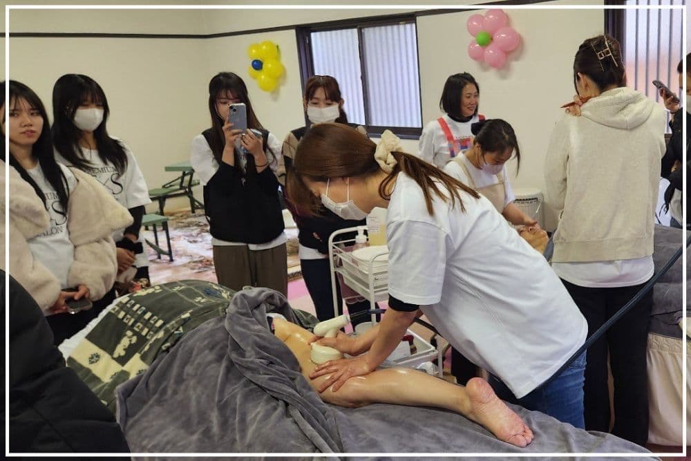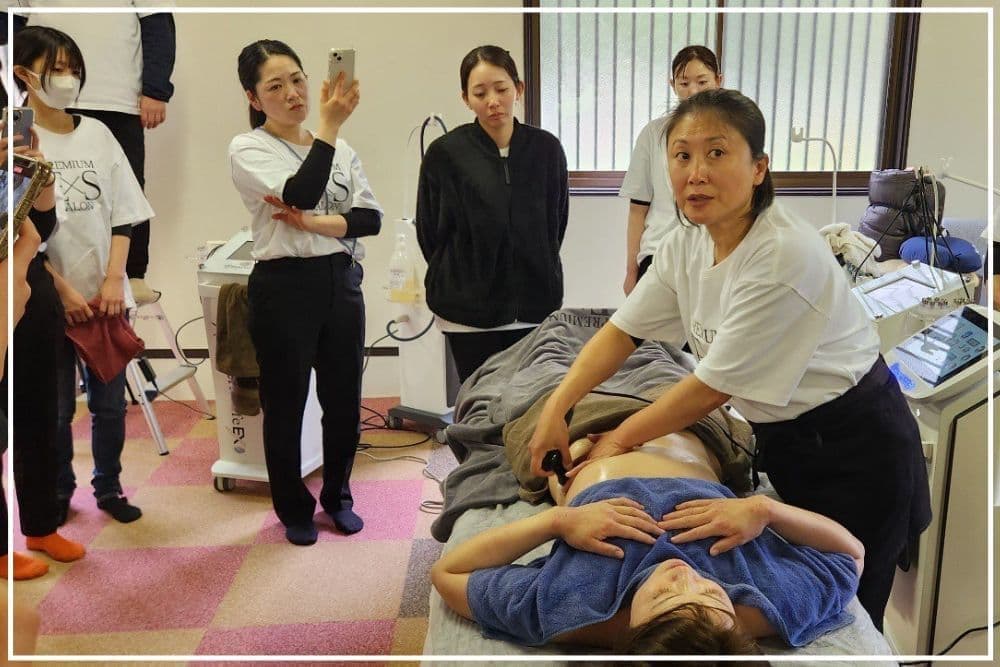 初心者向け基礎講習から、上級エステティシャンのスキルアップ研修、新メニュー導入に伴う実践トレーニングまで対応。